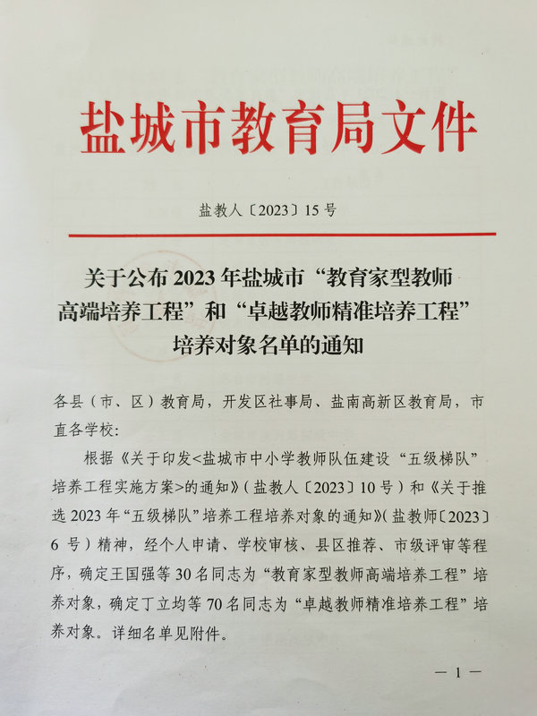 喜报:我校8名教师入选2023年盐城市中小学教师队伍建设“五级梯队”培养工程培养对象